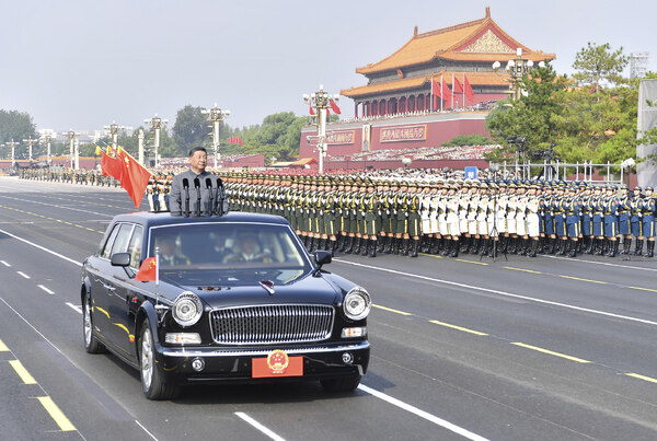 雄壯的軍樂聲中,習近平乘車沿著寬闊的長安街,依次檢閱13個徒步方隊、1個戰旗方隊、22個裝備方隊。受閱部隊軍容嚴整、意氣風發,鐵甲戰車整齊列陣、威風凜凜。這是人民軍隊奮進建軍百年的嶄新亮相,這是中華民族捍衛世界和平的堅定宣示。